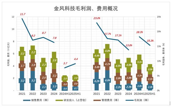 2025年H1,毛利润、总费用分别为44亿、26亿。总费用率比毛利润率低6.4个百分点。